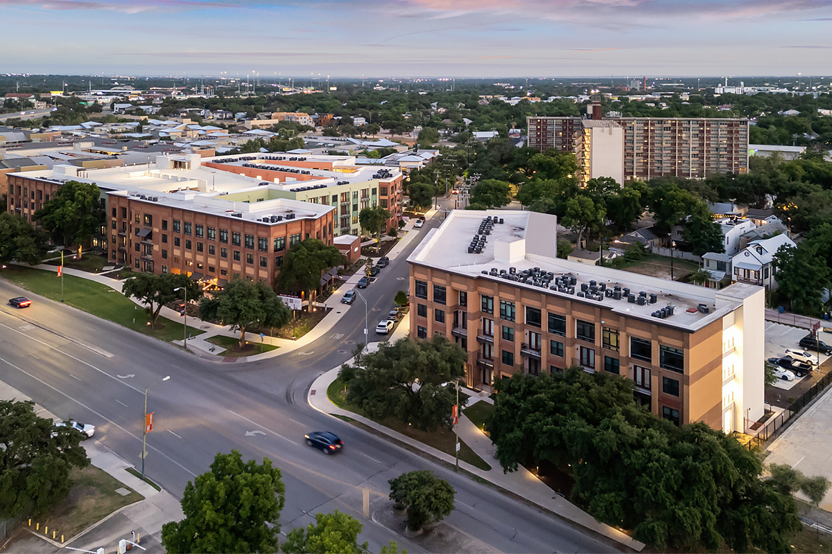 100 Labor is located at the edge of Hemisfair, adjacent to the historic Lavaca neighborhood. Today, the Hemisfair site is anchored by the Henry B. Gonzalez Convention Center and is undergoing successive stages of redevelopment. Notably, Alamo Architects was also on the design team for Civic Park at HemisFair, dedicated in 2023 to very positive reviews. 100 Labor joins this vital urban neighborhood: a hub for business and tourism and focus of new interest in downtown living.