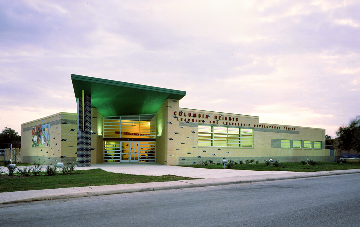 Our empathy and respect for the area’s adult learners are evident in this upbeat, welcoming City facility. This rugged building endures: In 2014, the San Antonio City Council approved its sale to the Harlandale Independent School District. The “learning tree” entry now welcomes neighbors to the Harlandale ISD College Café and Family Learning Center.
