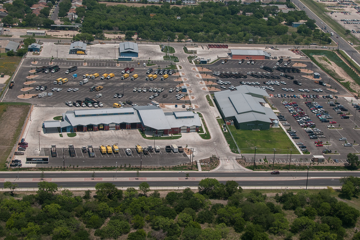 Ever wonder where garbage trucks go for a bath? The Northwest Service Center is a maintenance hub for the many hard-working vehicles in the City fleet. Alamo Architects provided architectural design criteria (bridging documents) for this central fleet maintenance campus for the City of San Antonio. Our exploration of light industrial materials in City projects (such as fire stations) gave us a ready vocabulary to bring local identity to these municipal buildings – within the construction and budget parameters of building typology.